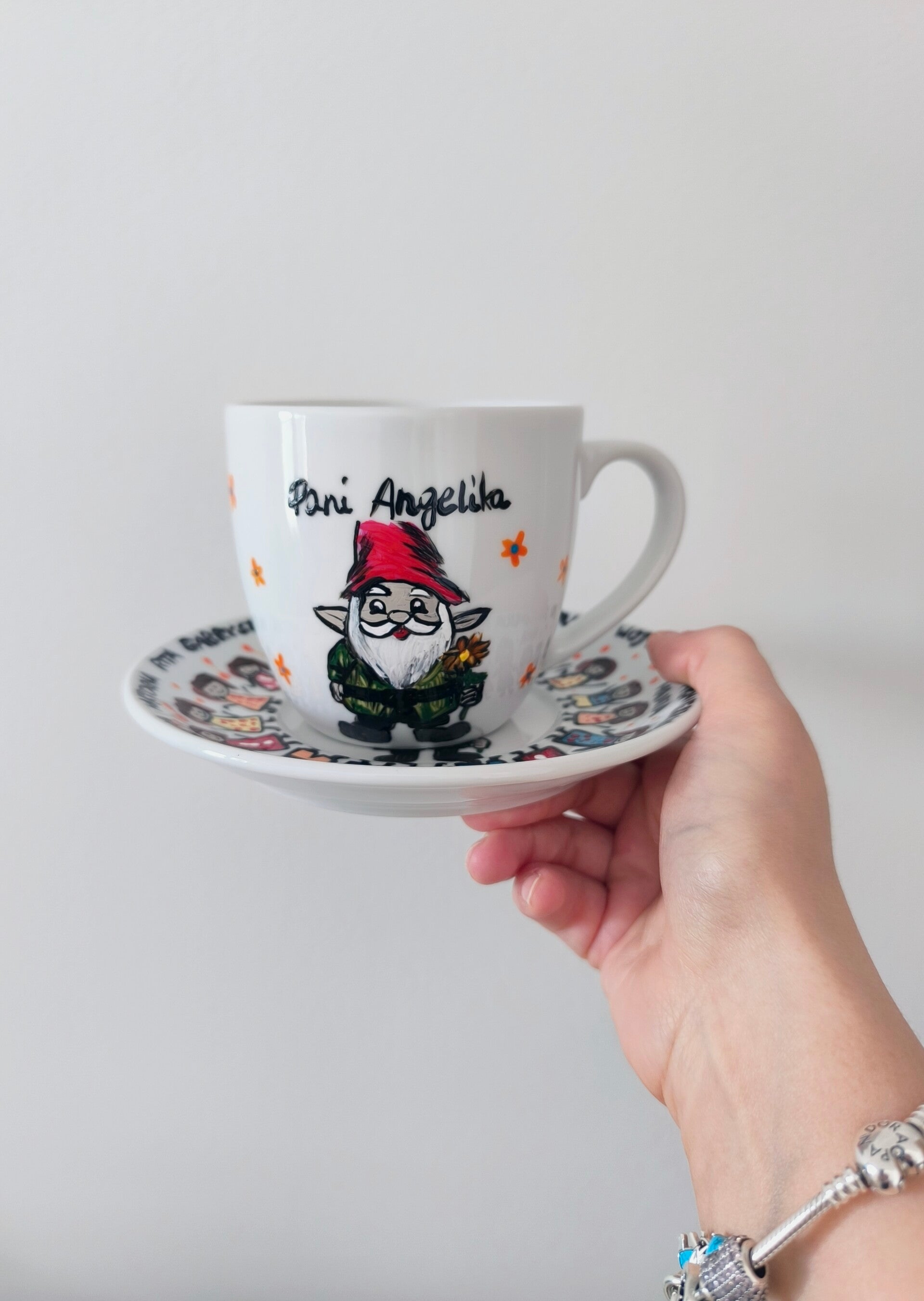 Porcelanowy kubek z motywem pandy i kwiatów, elegancki prezent dla dziecka.
