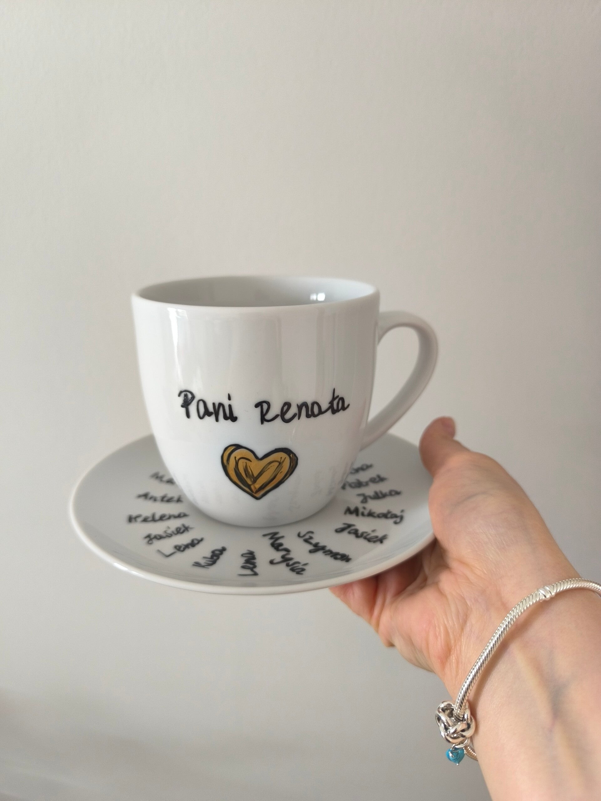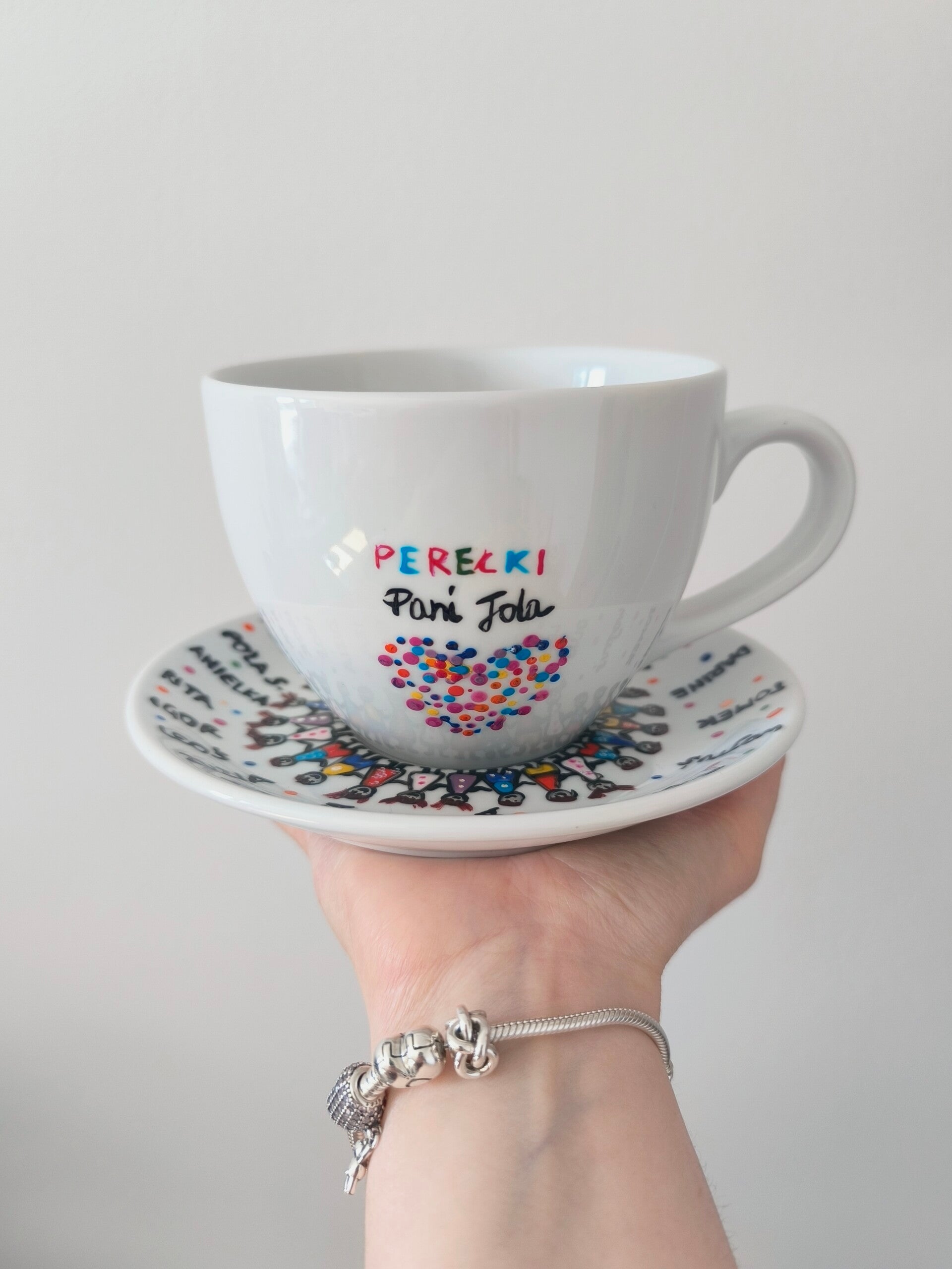 Porcelanowy kubek z motywem kwiatów polnych i serc, elegancki upominek dla przedszkolanki.