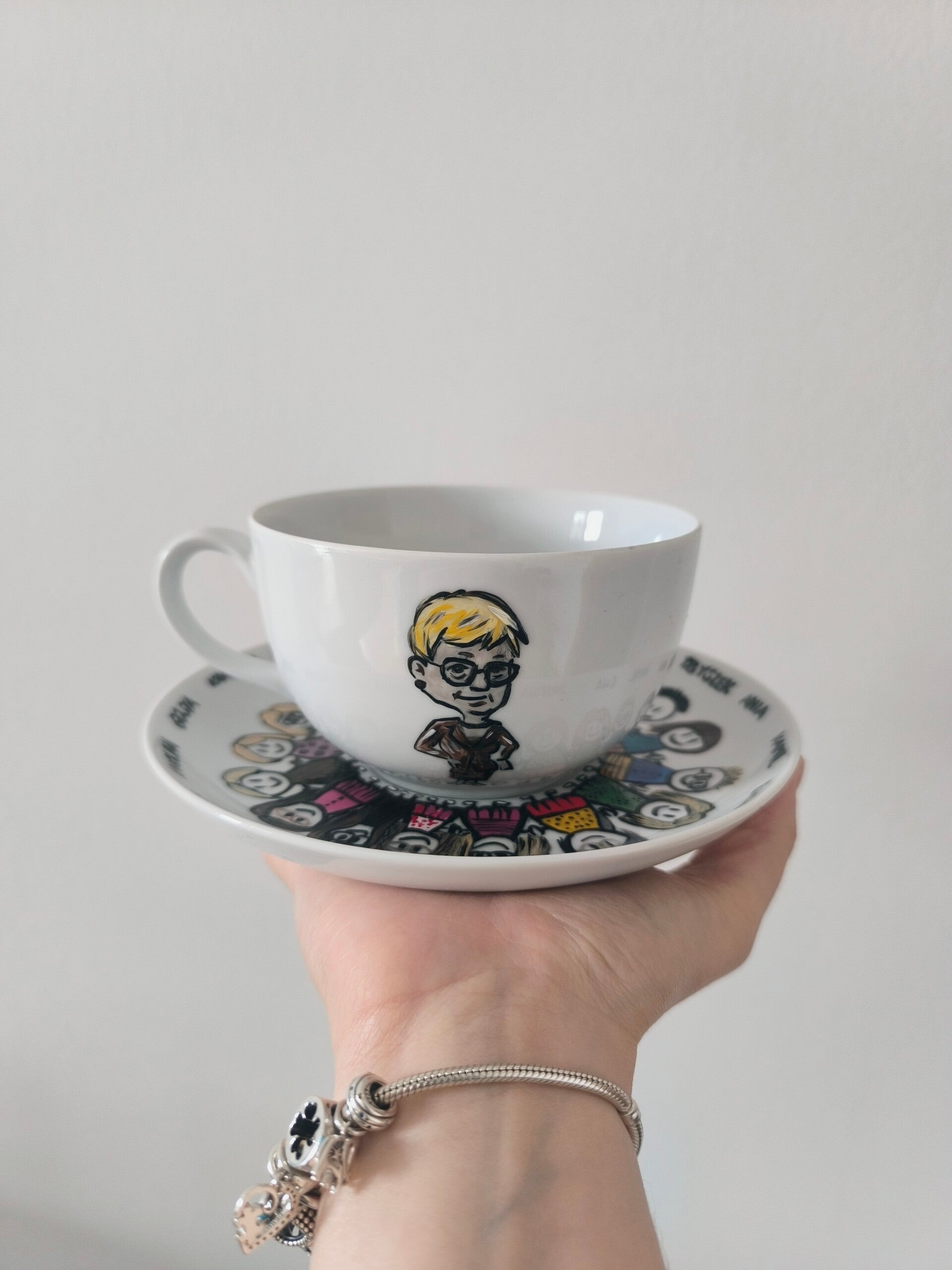 Porcelanowy kubek z motywem tulipanów i książek, elegancki prezent dla nauczyciela.