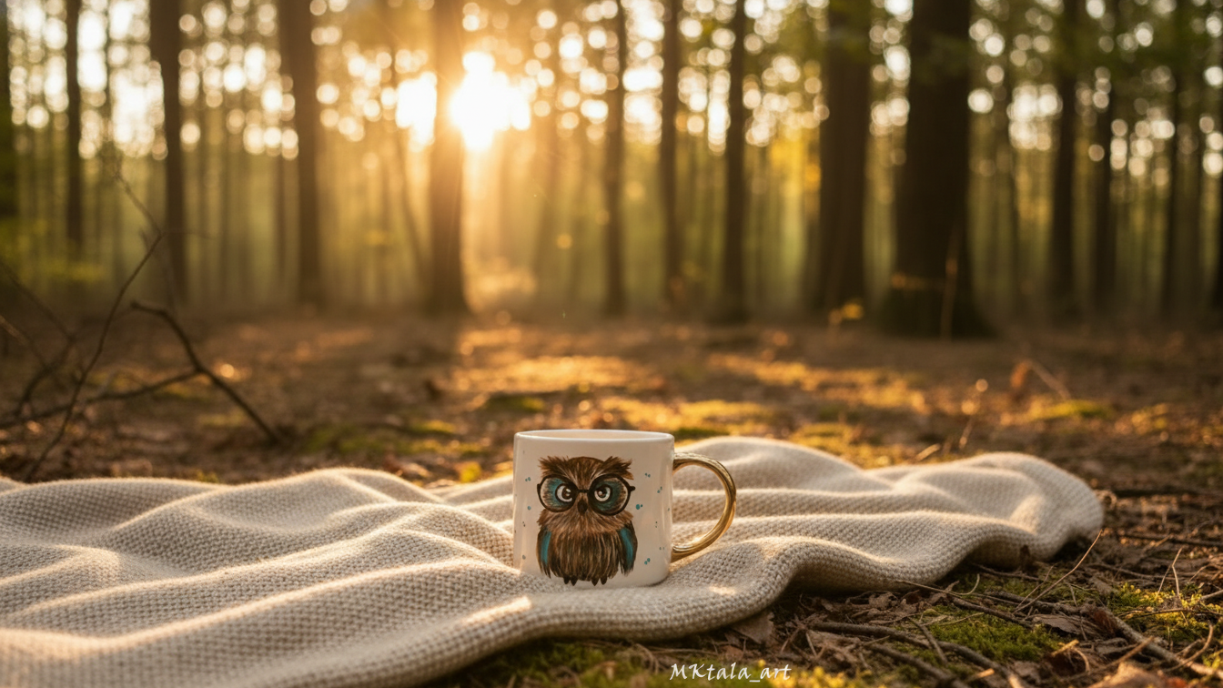 Ręcznie malowany kubek z motywem sówki i kwiatów, prezent z podziękowaniem
